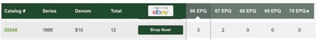 | 1995 D | $10 | DIS40 | 66 | $4,000 | 20211 |